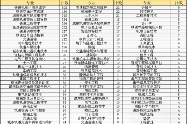 成都鐵路局2025錄用專業(yè)數(shù)據(jù)