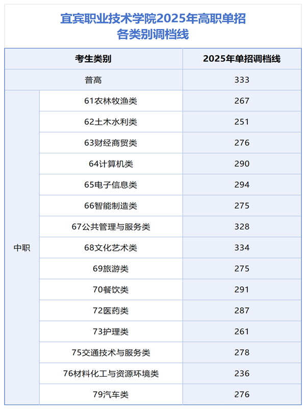 2025年單招各類別專業(yè)最低調檔線(普高+中職)