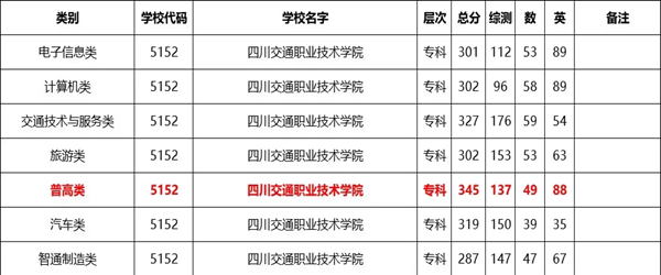 四川交通職業(yè)技術學院2024年單招最低錄取分數(shù)線: