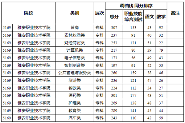 雅安職業(yè)技術(shù)學(xué)院2024年單招各類(lèi)別錄取分?jǐn)?shù)線(xiàn):