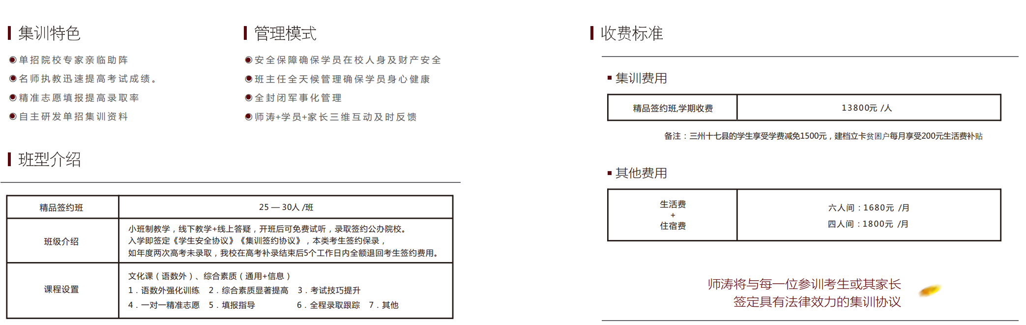 四川師濤單招培訓(xùn)學(xué)校培訓(xùn)費(fèi)13800元含資料費(fèi),短期培訓(xùn)費(fèi)7800元含資料,生活費(fèi)+住宿費(fèi)一個月1660元,地址位于溫江區(qū)江寧北路999號,招生辦電話:17394933667林老師。