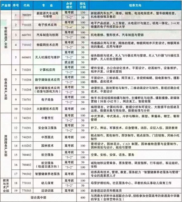學(xué)校緊密圍繞重慶市“33618”現(xiàn)代制造業(yè)集群建設(shè)和“數(shù)字重慶”建設(shè)的戰(zhàn)略需求,開設(shè)智能制造、信息技術(shù)、現(xiàn)代服務(wù)、教育與體育四大專業(yè)群,涵蓋18個熱門專業(yè),精準(zhǔn)對接區(qū)域產(chǎn)業(yè)發(fā)展需求,為學(xué)生提供多元化的成才路徑。