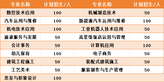 學(xué)校現(xiàn)有綜合高中部、學(xué)前藝術(shù)部、機(jī)電汽修部、建筑信息部、旅游商務(wù)部等5個(gè)專業(yè)部。從2024年開始招收綜合高中學(xué)生,注冊(cè)普高學(xué)籍,學(xué)習(xí)普高教材、參加全國(guó)統(tǒng)一高考。還開設(shè)有數(shù)控技術(shù)應(yīng)用、機(jī)械制造、汽車運(yùn)用與維修、新能源汽車運(yùn)用與維修、機(jī)電技術(shù)應(yīng)用、工業(yè)機(jī)器人技術(shù)應(yīng)用、旅游服務(wù)與管理、高星級(jí)飯店運(yùn)營(yíng)與管理、會(huì)計(jì)事務(wù)、電子商務(wù)、美發(fā)與形象設(shè)計(jì)、建筑工程施工、裝配式建筑施工、計(jì)算機(jī)應(yīng)用、服裝設(shè)計(jì)與制作、幼兒保育、工藝美術(shù)17個(gè)專業(yè)。建有校內(nèi)實(shí)訓(xùn)基地15個(gè)、校內(nèi)實(shí)訓(xùn)室115間、校中廠4個(gè)、校外頂崗實(shí)習(xí)基地67個(gè)。