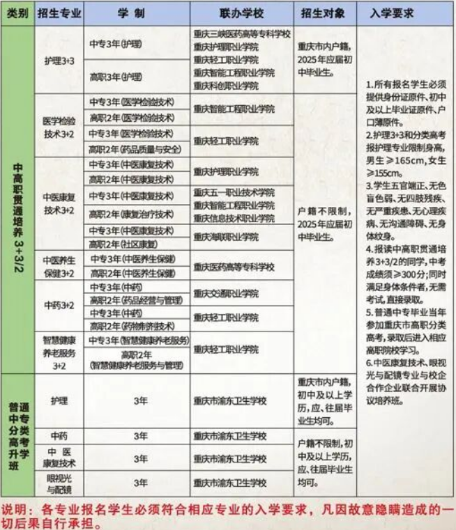 重慶市渝東衛(wèi)生學(xué)校2026年招生簡章,招生專業(yè)及報讀條件
