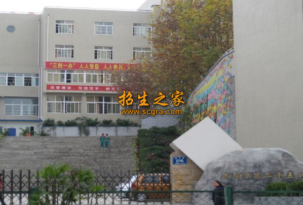 貴陽市第二十五中學占地面積32460㎡,校舍建筑面積13866㎡,綠化面積1349 ㎡。校園設施設備完善,環(huán)境優(yōu)美,綠樹成蔭,具有良好的育人環(huán)境,2004年被授予 貴州省綠色學校稱號;是東北師范大學信息技術實驗學校;上海市宜川中學的姊妹學校(世界冠軍劉翔的母校),北京師范大學、華東師范大學教育實踐合作學校。于2011年成功申辦為省級二類示范性高中。2004年被授予“貴州省綠色學校”“東北十大信息技術實驗學校”“上海市宜川中學的姊妹學校(世界冠軍劉翔的母校)”稱號。目前學校正按小河區(qū)要求,積極準備示范性高中的啟動工作 。