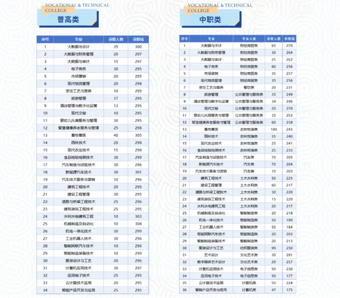 內(nèi)江職業(yè)技術(shù)學(xué)院2024年高職單招各專業(yè)類別最低錄取分?jǐn)?shù)線
