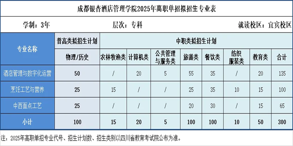 成都銀杏酒店管理學院2025年單獨招生簡章,招生專業(yè)有哪些,單招多少分能錄取