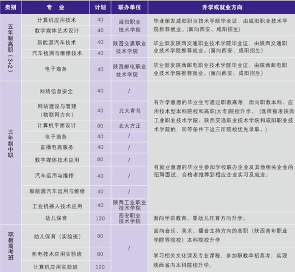 咸陽(yáng)市秦都區(qū)職業(yè)教育中心2025年招生簡(jiǎn)章,招生專業(yè)一覽表