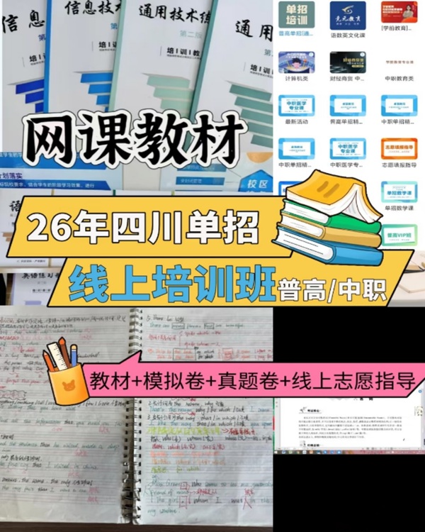 摘要:成都首創(chuàng)單招培訓(xùn)學(xué)校針對(duì)2026年高職單招考試開設(shè)線下簽約班13800元和線上網(wǎng)課班1980元!詳細(xì)撥打我校招生辦吳老師電話咨詢: 13540123367 (VX同號(hào))~ 一、 網(wǎng)課 課程亮點(diǎn) 1、考點(diǎn)全覆蓋(語(yǔ)文、數(shù)學(xué)、英語(yǔ)、通用技術(shù)、信息技術(shù)); 2、教材根據(jù)單招考綱編撰、實(shí)事更
