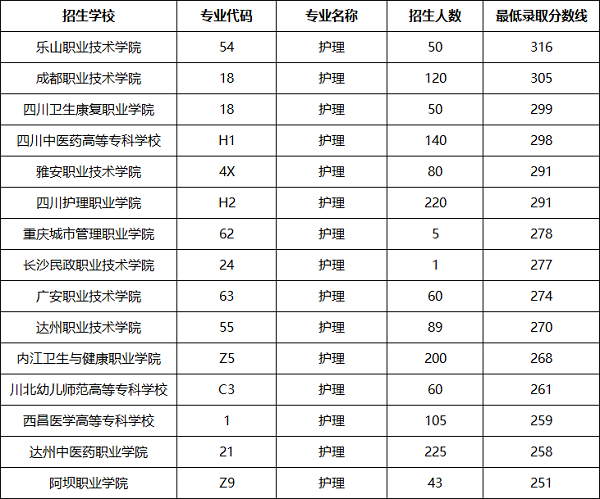 2025年護理專業(yè)單招各公辦院校錄取分數(shù)線: