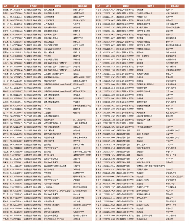 【2024屆單招部分錄取名單】: