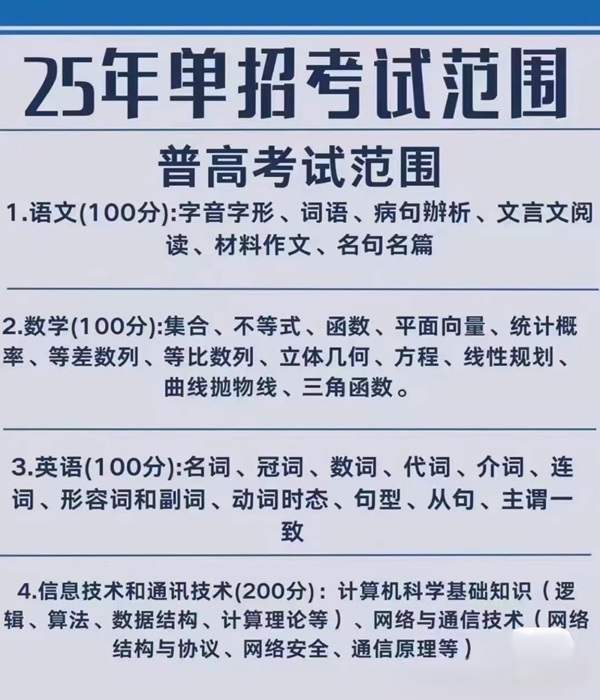 四川單招考試范圍: