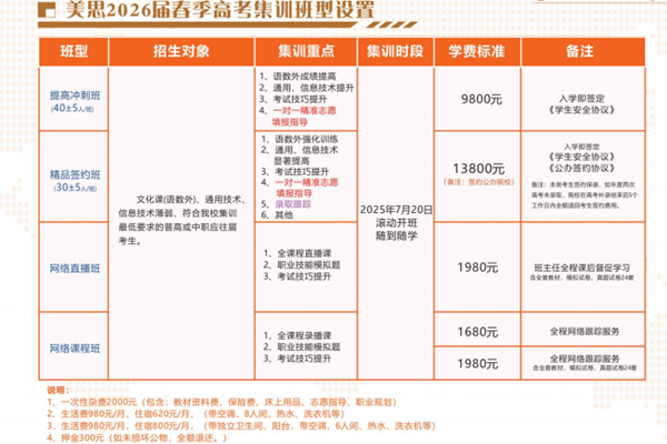 成都美思單招培訓(xùn)學(xué)校(成都錦妤美思培訓(xùn)學(xué)校)2026 年單招培訓(xùn)開(kāi)設(shè) “精品簽約班”,提供公辦院校錄取保障。咨詢電話:18382252107(微信同號(hào))!