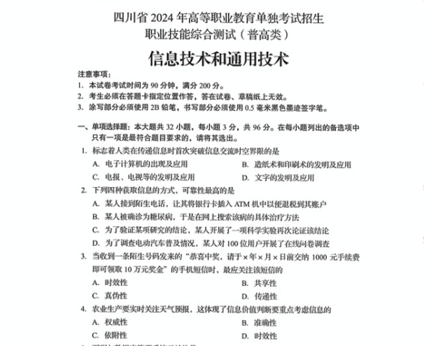 以上就是四川單招通用技術(shù)和信息技術(shù)考試內(nèi)容及成都較好的單招培訓(xùn)機(jī)構(gòu)推薦。撥打我們聯(lián)系電話即可獲得四川省2024年單招語(yǔ)數(shù)外和通用技術(shù)信息技術(shù)單招真題,聯(lián)系電話:13348832372(微信同號(hào))?。?!