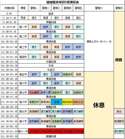 錦城菁英課程安排: