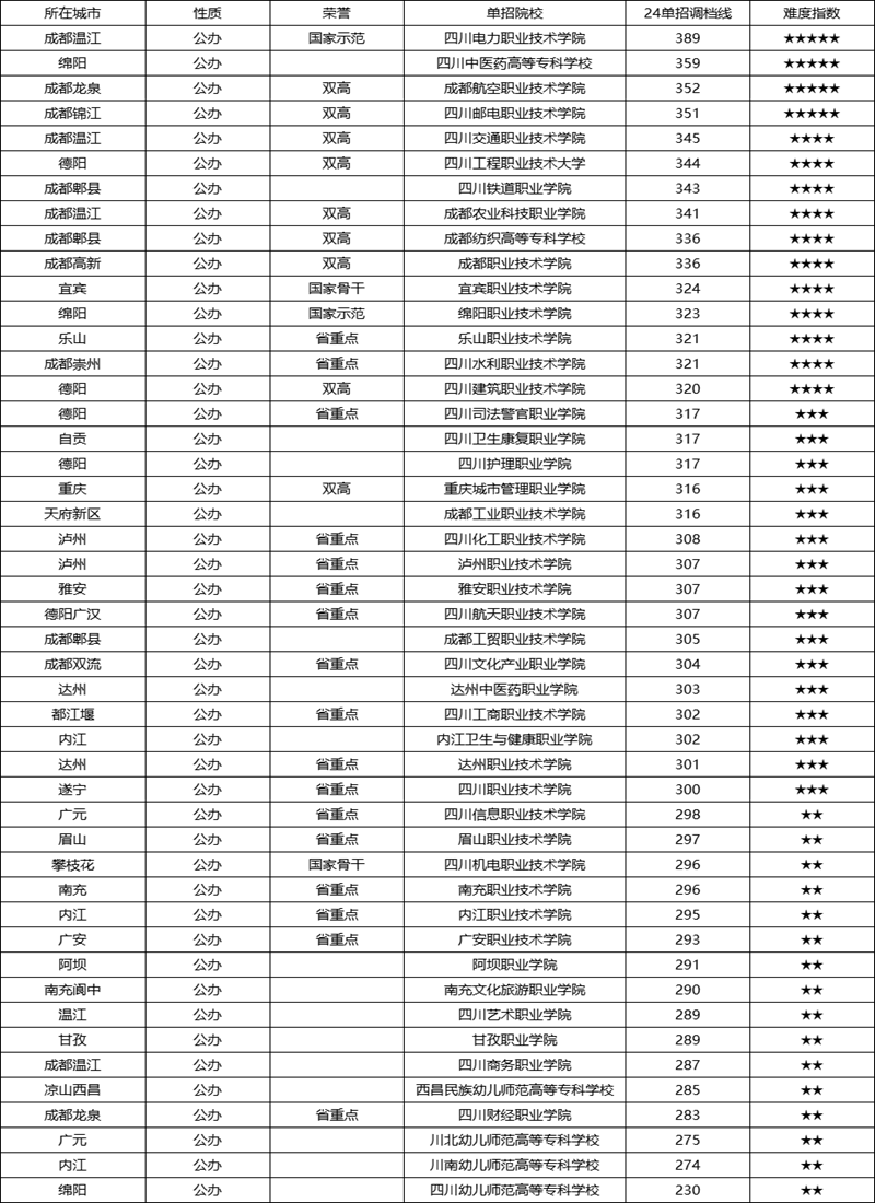 2025年四川單招公辦院校難度排名
